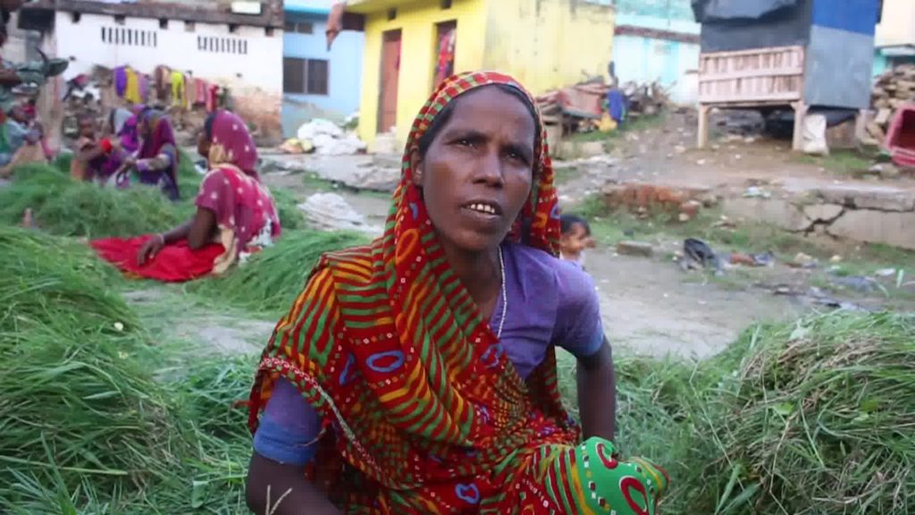 मिना केवट पनि छोरीसँगै घाँस बेच्न आएकी थिइन् ।