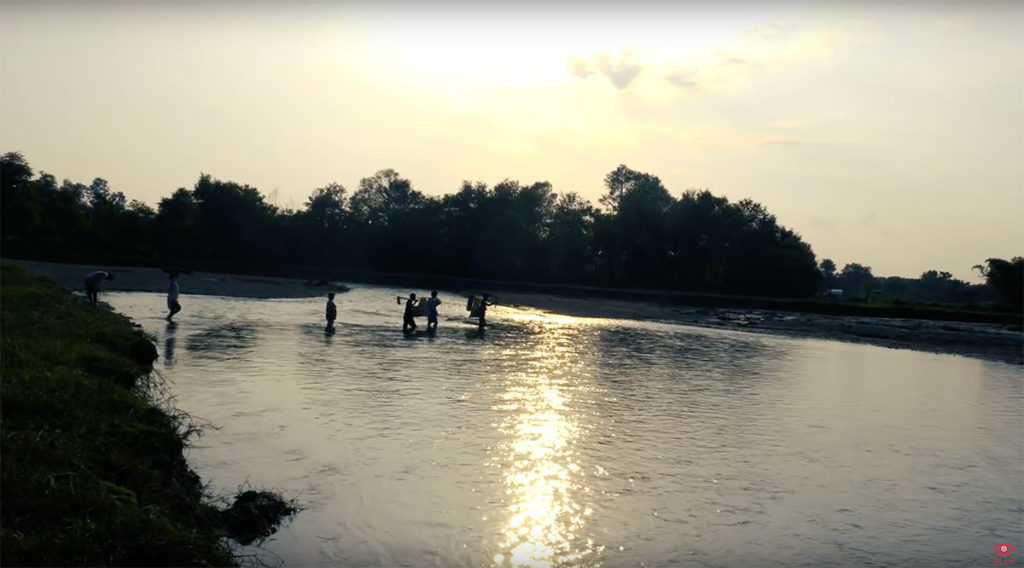 लगभग १ घन्टा जंगल छिचोलेपछि डुङ्गाघाट पुग्यौं । नारायणी नदीको एउटा भंगालो । रुख खोपेर बनाएका साँघुरा डुङ्गा हामीले बलियो गरी समात्यौं । माझीहरुले नदीको उल्टो दिशातिर डुङ्गा खियाए ।